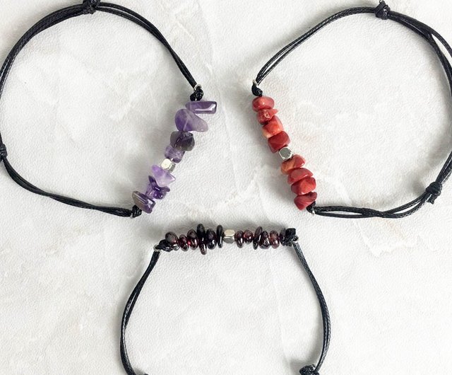 誕生石碎石系列 1 3月石榴石碎石紫水晶碎石紅珊瑚碎石 皮繩x 手環x 手鍊x 手工製作x 客製化 設計館璃珠